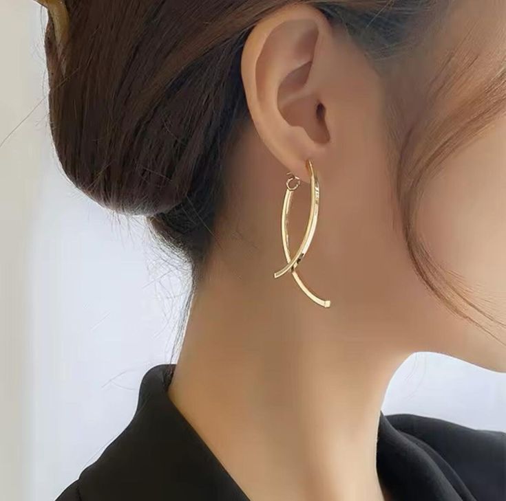 گوشواره حلقهای بزرگ طرح ضربدری. با فرم منحنی و متقاطع، یک انتخاب جسورانه و شیک. رنگ طلایی براق و طراحی بزرگ آن، این گوشواره را به یک زیورآلات بیانیهای (Statement) برای استایلهای مُد روز تبدیل میکند. ضد حساسیت و بسیار جذاب.